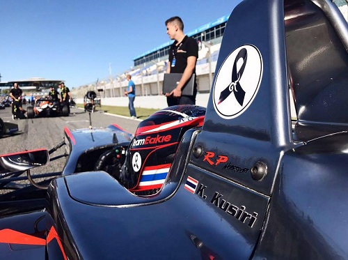 “บูม” กันตธีร์ กุศิริ นักขับดาวรุ่งชาวไทย ติดสติ๊กเกอร์ไว้อาลั