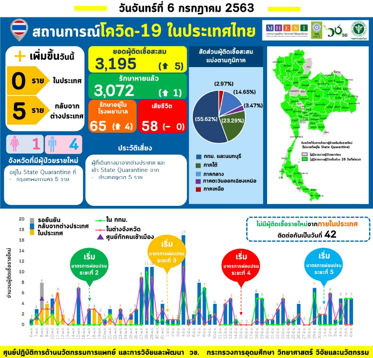 ผู้ติดเชื้อสะสม 3,195 ราย ใน 68 จังหวัด (เพิ่มขึ้น 5 ราย)