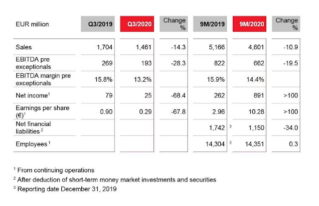 - ยอดขายไตรมาส 3 อยู่ที่ 1.461 พันล้านยูโรเท่ากับลดลง 14.3 เปอร์เซ็นต์