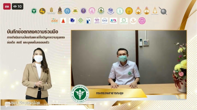 วันศุกร์ที่ 17 กันยายน พ.ศ. 2564 เวลา 10.00 น. ผ่านสื่ออิเล็กทรอนิกส์ นางจินตนา จันทร์บำรุง อธิบดีกรมกิจการสตรีและสถาบันครอบครัว เข้าร่วมพิธีลงนามบันทึกข้อตกลงความร่วมมือการดำเนินงานป้องกันและแก้ไขปัญหาความรุนแรงต่อเด็ก สตรี และบุคคลในครอบครัว โดยมีวัตถุประสงค์เพื่อขับเคลื่อนการดำเนินงานร่วมกับภาคีเครือข่ายที่มุ่งเน้นการทำงานแบบมีส่วนร่วม และบูรณาการกันอย่างต่อเนื่อง รวมทั้งขยายการดำเนินงานให้ครอบคลุมการช่วยเหลือและคุ้มครองสิทธิไปยังกลุ่มเป้าหมายอื่น ๆ ให้มากยิ่งขึ้น โดยมีนายจุรินทร์ ลักษณวิศิษฎ์ รองนายกรัฐมนตรี ให้เกียรติเป็นประธานในพิธี พร้อมด้วยนางสาวสุนีย์ ศรีสง่าตระกูลเลิศ รองอธิบดีกรมกิจการสตรีและสถาบันครอบครัว และนางรุ่งทิวา สุดแดน รองอธิบดีกรมกิจการสตรีและสถาบันครอบครัว หน่วยงานภาคีเครือข่ายที่เข้าร่วมลงนามบันทึกข้อตกลงฯ ประกอบด้วย หน่วยงานภาครัฐ และองค์กรพัฒนาเอกชน ทั้งนี้ กรมกิจการสตรีและสถาบันครอบครัวได้ปฏิบัติตามมาตรการ social distancing อย่างเคร่งครัด