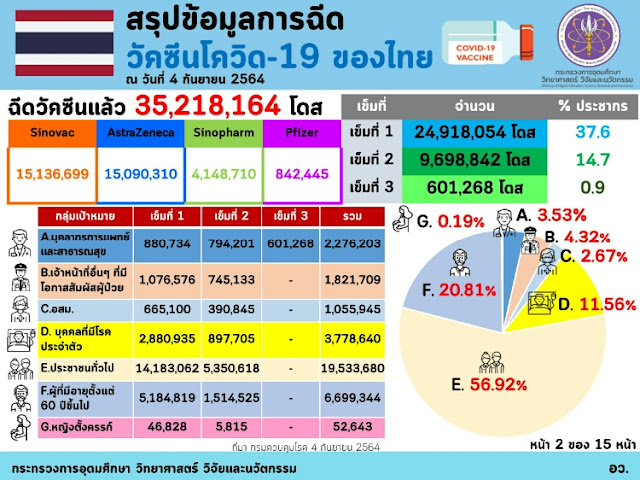 1. ข้อมูลการฉีดวัคซีนล่าสุดของประเทศไทย ณ วันที่ 4 กันยายน 2564