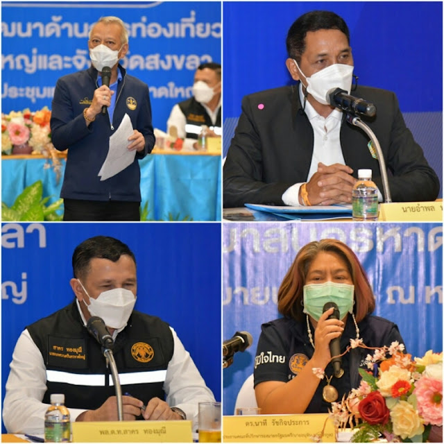บ่ายวานนี้ 24 ก.ย. 64 นายพิพัฒน์ รัชกิจประการ รัฐมนตรีว่าการกระทรวงการท่องเที่ยวและกีฬา นางนาที รัชกิจประการ ประธานคณะที่ปรึกษา นายอนุทิน ชาญวีรกูล รองนายกรัฐมนตรี นายอำพล พงษ์สุวรรณ์ รองผู้ว่าราชการจังหวัดสงขลา พล.ต.ท.สาคร ทองมุณี นายกเทศมนตรีนครหาดใหญ่ นายก้องศักด ยอดมณี ผู้ว่าการการกีฬาแห่งประเทศไทย และนางสาวฐาปนีย์ เกียรติไพบูลย์ รองผู้ว่าการด้านสินค้าและธุรกิจท่องเที่ยว ททท. ร่วมกับผู้ประกอบการอุตสาหกรรมท่องเที่ยวจังหวัดสงขลา 4 หน่วยงานหลัก ได้แก่ สภาอุตสาหกรรมท่องเที่ยวจังหวัดสงขลา สมาคมมัคคุเทศก์และบริษัทนำเที่ยว สมาคมการค้าและการท่องเที่ยวฮาลาลไทย-อาเซียน ตลอดทั้งผู้แทนหน่วยงานภาครัฐและเอกชนที่เกี่ยวข้อง กว่า 100 คน ประชุมเตรียมความพร้อมด้านการท่องเที่ยว แนวทางการเปิดรับนักท่องเที่ยว ตามแผนการเปิดประเทศของรัฐบาล รวมถึง แนวทางการพัฒนาเมือง การฟื้นฟูเศรษฐกิจ ณ เทศบาลนครหาดใหญ่ จังหวัดสงขลา
