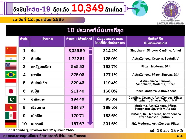🌏 ในการฉีดวัคซีน จำนวน 10,349 ล้านโดสนี้ อว. ขอรายงานสถิติที่สำคัญ คือ