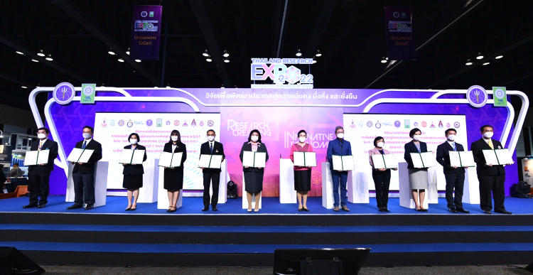 วช. MOU สวทช. และมหาวิทยาลัยเครือข่าย หนุนเยาวชนขับเคลื่อนประเทศด้วยวิทยาศาสตร์และเทคโนโลยี ในงานมหกรรมงานวิจัยแห่งชาติ 65