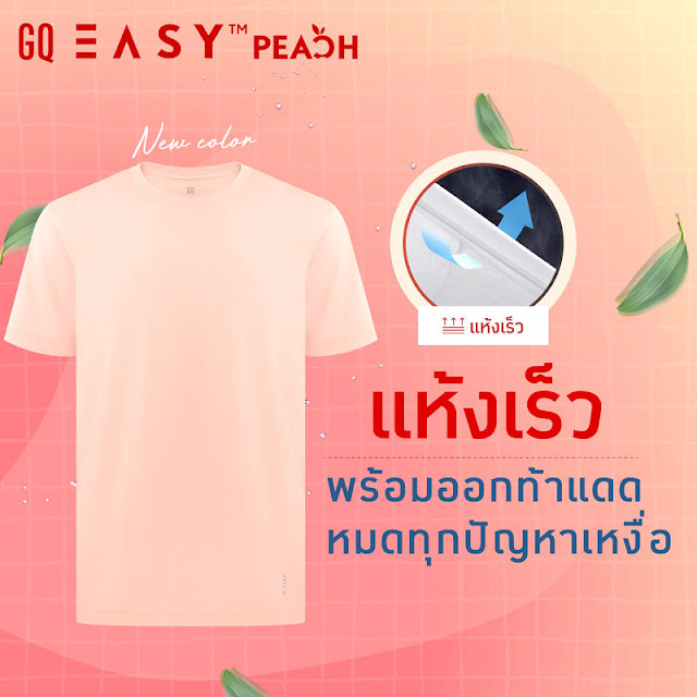 GQ Easy ยังมาพร้อมสีใหม่ในเฉดสีพีช สดใส มีออร่า พร้อมท้าแดด ลาความหมอง บายความเหม็น ต้อนรับฤดูร้อน โดดเด่นด้วยเทคโนโลยียับยั้งแบคทีเรีย ลดกลิ่นอับชื้น กลื่นเหงื่อ ระบายอากาศดี บางเบา พร้อมท้าแดด เพิ่มสีสันสดใส ใส่แล้วดูดีมีออร่า ใส่ได้ทั้งผู้ชายและผู้หญิง หรือจะใส่เป็นคู่ก็น่ารักสุดๆ ในราคา 199 บาท