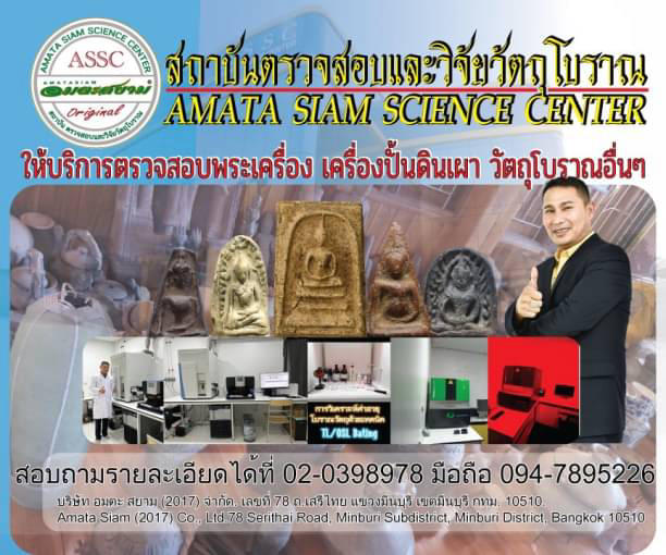 อมตะสยาม สถาบันตรวจสอบวัตถุมงคล พระเครื่อง วัตถุโบราณ ด้วยเครื่องมือทางวิทยาศาสตร์ โดยการหาค่าอายุที่แม่นยำจากนวัตกรรมเครื่อง XRD และ XRF TL/OSL Lexygresearch และ LA-ICPMS เพื่อหาปริมาณรังสีต่อปี จากประเทศเยอรมัน ซึ่งมีเพียง 3 เครื่องในประเทศไทย